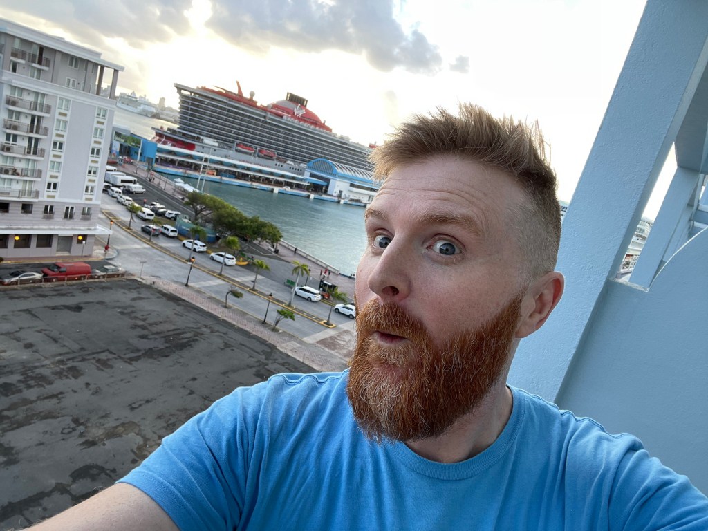 Jan 27 – momma wasn’t happy to hear I was setting the alarm for 5am, the Valiant Lady was scheduled to dock @ 6…. I wasn’t missing the opportunity to watch that sexy scarlet cruise ship back into Pier 4 of San Juan Harbour. I tracked her on a Maritime traffic website and in she came! Pretty unique opportunity, watching that from my balcony, and it was well worth the early morning. Who wants to sleep away embarkation day anyway… it’s the best day of the cruise (well most of the time, this sailing had a more special day 😊)