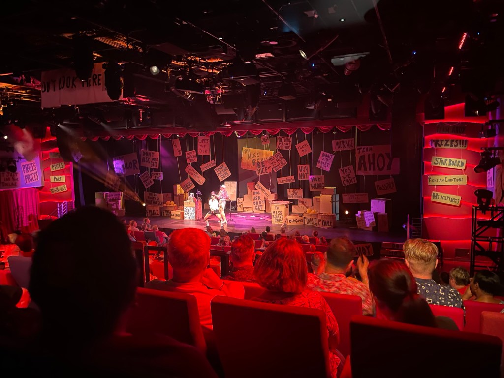 Dinner was really good, pasta was perfect. Paul turned up his volume 📢 to let everybody on board know that he was ready to set sail we met our first favourite server, Joel… who took a liking to one of the ladies at our table. After dinner, we went to the red room ♥️♥️♥️ to watch the “MISS-Behave” show. I think it’s tacky to video those shows, I’ll leave it to the imagination. It was very entertaining, laugh out loud refreshing, and really put the “!” On the adults only voyage! The master of ceremonies was an eccentric person named RHCS Pieces who dawned a gold sequin ensemble with an amazingly flexible ballerina sidekick. It was a ton of fun for the first night. Played some cards 🃏 and roulette in the casino and hit the hey, next day we were in Tortola, very close to where sir Richard Branson has his private island 🏝️
