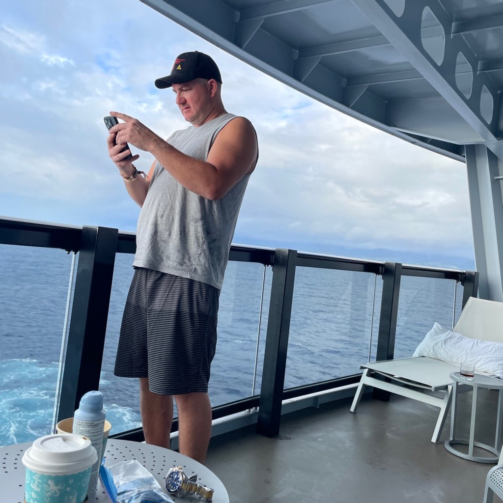 Late afternoon we found our path back on board. Fun fact, if you walk downhill in these skinny-street ports of call (where you can’t see shit) you eventually hit the Sea – where the 🚢 is. I got my trunks on and went up to Richard’s Rooftop with Gil, Paul and Dave. The 4 of us sat in the hot tub as it rained 🌧️ we were joined by a father and son from California. Talked about good bbq spots in the states, bitched about Justin Trudeau and put back a couple Heineken Silvers. Showered up and off to dinner.
