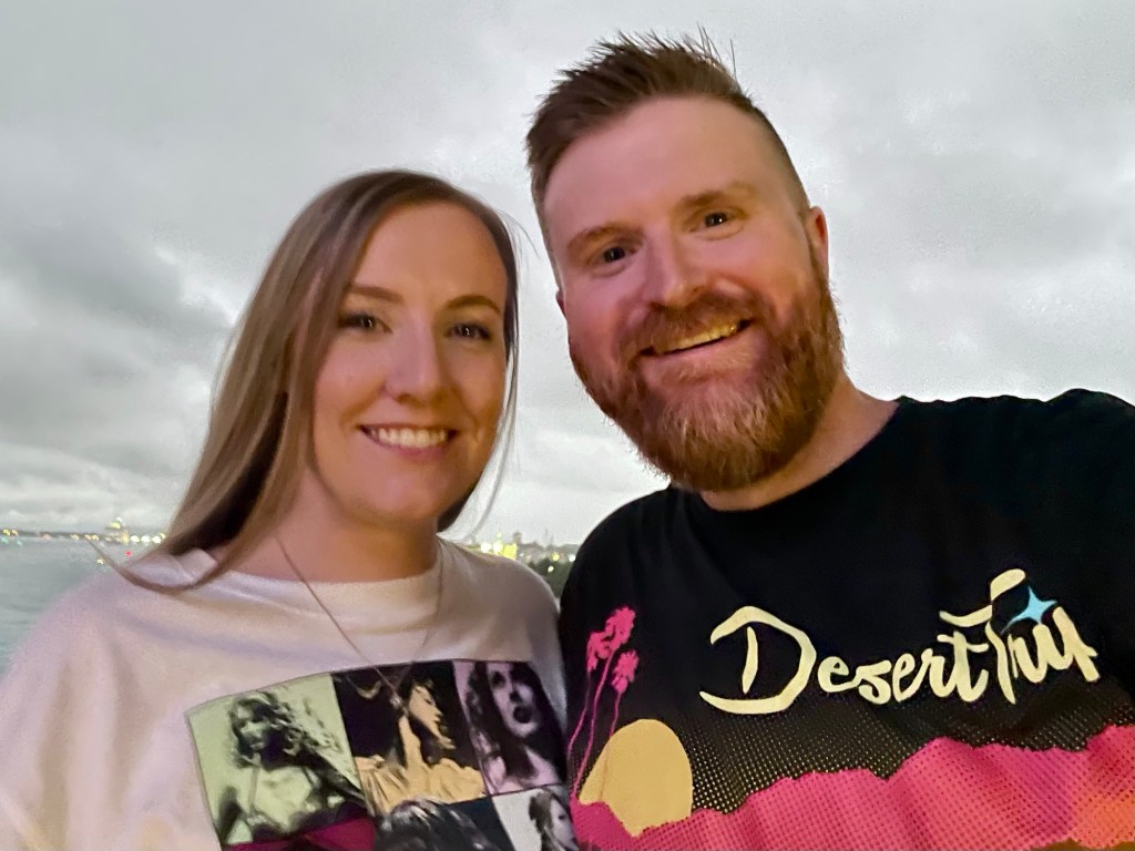 We got dressed for dinner – like the good rockstars we are we put on our best concert shirts for this evening. I tossed on my 2016 Desert Trip festival shirt and Janet put on some Eras Tour shirt…