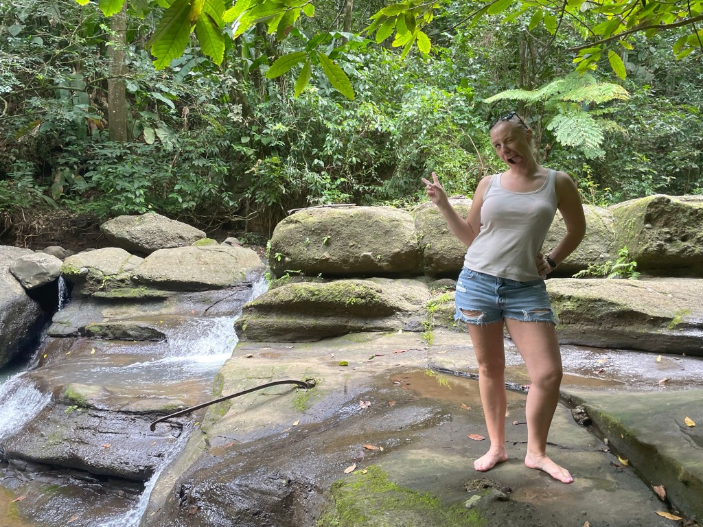 A bunch of our crew (two whom spent a cpl weeks on St Lucia not a month ago) had pre booked a different boat tour of the island for them selves. Paul and Emily decided to venture off with them, there was no way this redhead was willing to beach, boat and booze in the noon hour – equator sun โ๏ธ. Janet and I went waterfall hunting/swimming ๐
