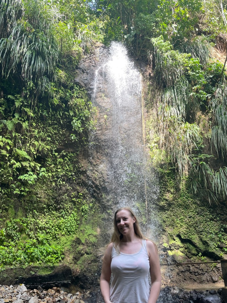 We had previously been to Sourfiere, travelled through the โdrive through volcanoโ and witnessed the massive volcanic mountains known as โLes Pitonsโ – we wanted the less popular tour, one that we hadnโt seen yetโฆ like we did on Barbados. Did some quick googling, the Errard Falls – on the East side of St Lucia, by the village of Dennery – Looked unique enough. Found our first destination ๐