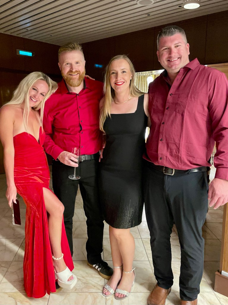 We picked up Dons daughter and her friend from the local collage while en route to the cruise port. Donvida was lovely, awesome people – very proud of their home. Welcoming is an understatement. Made it Back on board and started getting ready for the big night – SCARLET NIGHT ๐๐ผ.