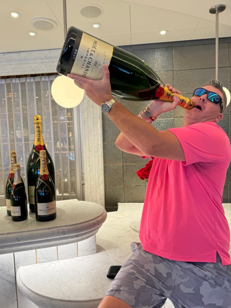 Dried off, our driver Kenny Rodgers picked us up, his wife came for the ride. Back on the ship, went up to our rooms – Promptly texted our rockstar agent Kimberly to have eight champagne flutes sent up to our suite, invited the parents up and the newly engaged got to share the big news on our terrace 😝