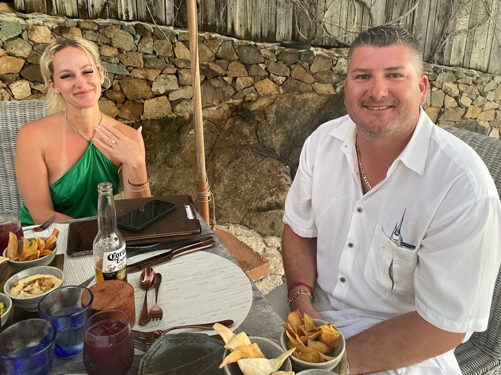 The sheer rocks staff came down with champagne, shots and treats. We ate, drank and enjoyed the sunset. Think Emily said “Oh My God” 87 times, at least. My Janet looked elated, glowing as the feels around the table were contagious. Paul was with us in 2008 when Janet and I were engaged.